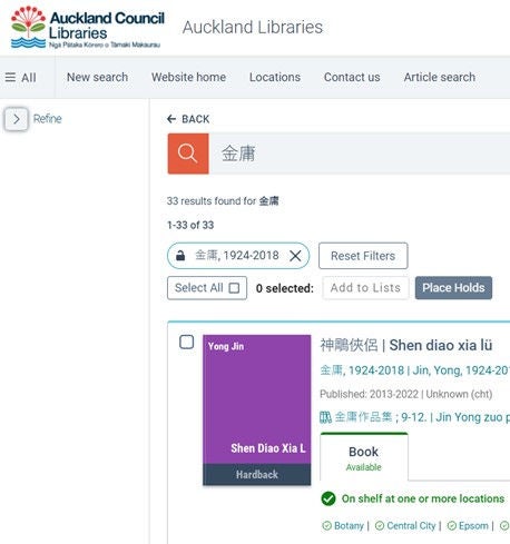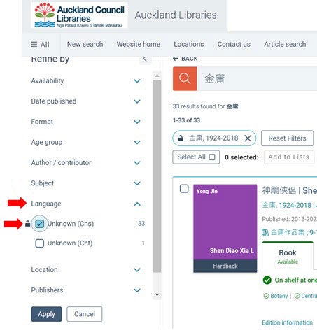 - Enter an author name or a title in Chinese characters (non-Roman characters). You can also use Pinyin (Romanised characters) to search for items in Chinese. For example: 金庸