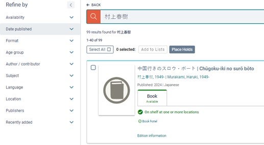 - Enter a title or an author name in non-Roman characters (original script of your language). For example: 村上春樹= Haruki Murakami