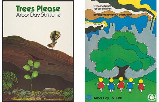 Many years later, an Arbour Day poster from 1978 (left) and another from 1979 (right), show us the evolution of print, especially in using nature illustrations to promote the event.