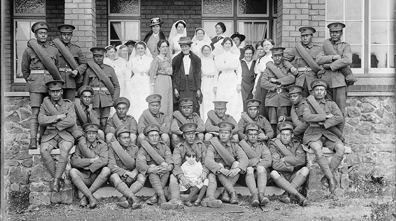 Nurse Nobbs and Niuean soldiers at the Auckland Trained Nurses Club in Mountain Road, Epsom, 1916. Auckland Libraries Heritage Collections 31-WP8025.
