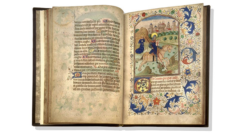 The Rossdhu Book of Hours, a Christian devotional book, was probably produced in Bruges between 1450 and 1475. Its first owner was likely the Countess of Moray, Elizabeth Dunbar, who lived with her third husband at Rossdhu, Scotland.