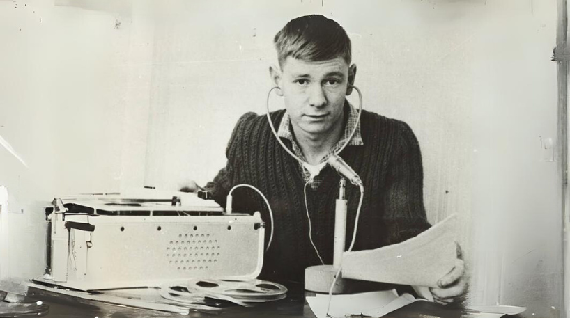 Bruce Elsmore, a keen tape recordist, recording a request show to send to New Zealand troops overseas. Photograph published in the South Auckland Courier Central Edition, 6 September 1967, page 25.